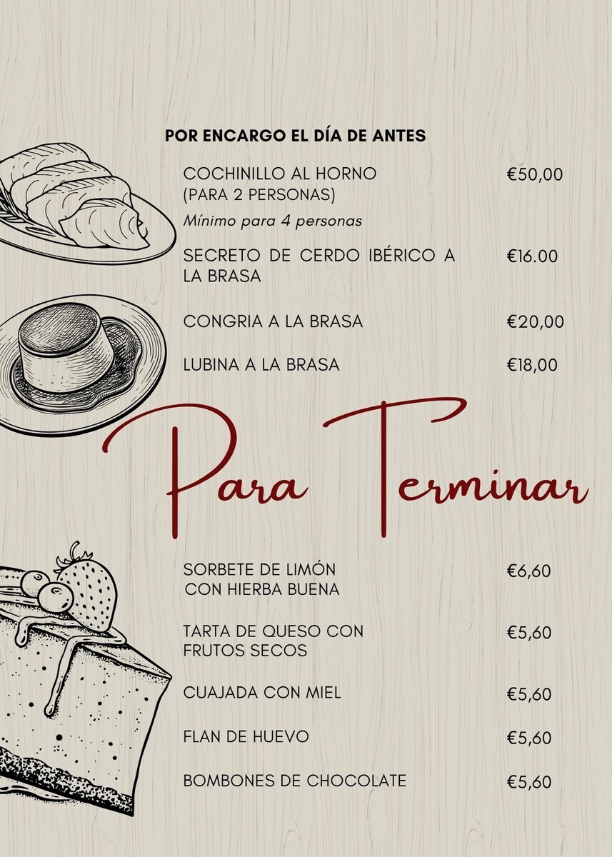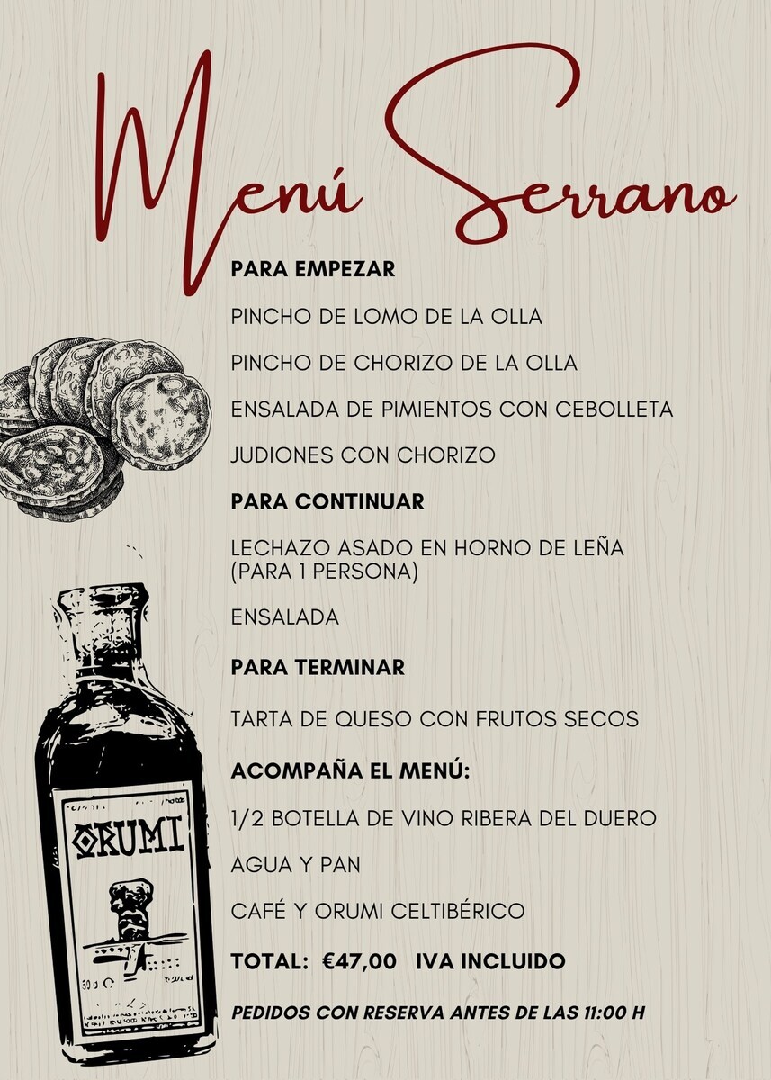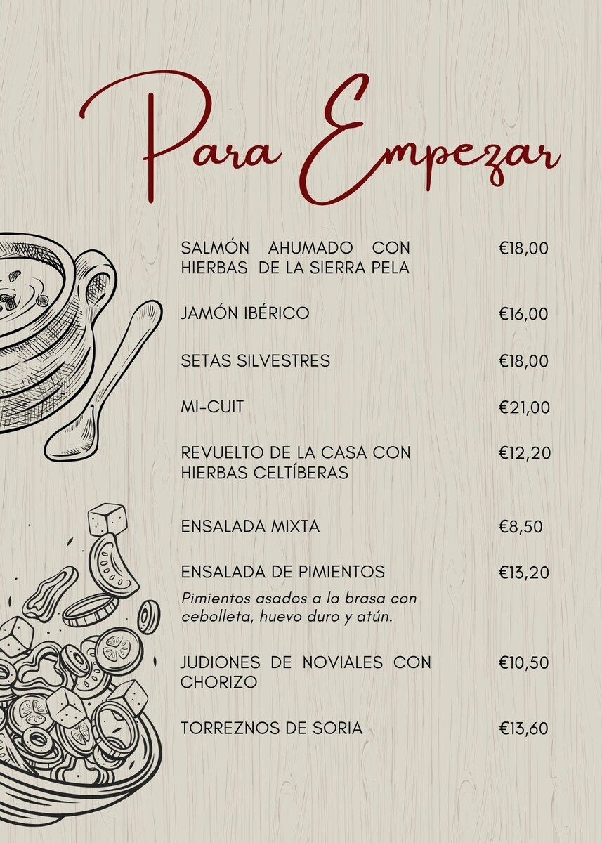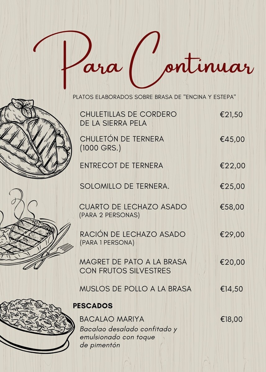 Restaurante especializado en cocina típica de la zona, basada en productos naturales, de origen local, cocinados con leña de encina y estepa.